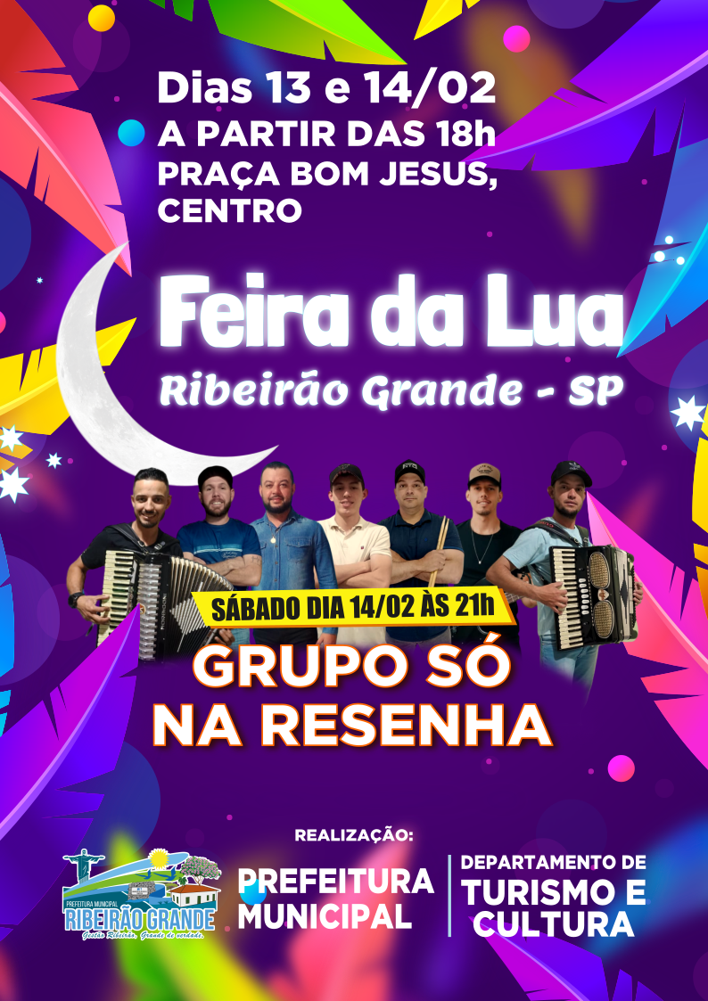 Vem aí a Feira da Lua nos dias 13 e 14 de fevereiro a partir das 18h na Praça Bom Jesus, Centro de Ribeirão Grande.
